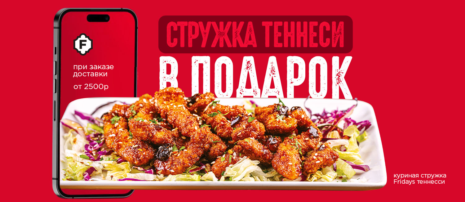 Закажите на сумму от 2500₽ и мы добавим в заказ наш фирменный штрих - хрустящую куриную стружку Fridays Теннесси!