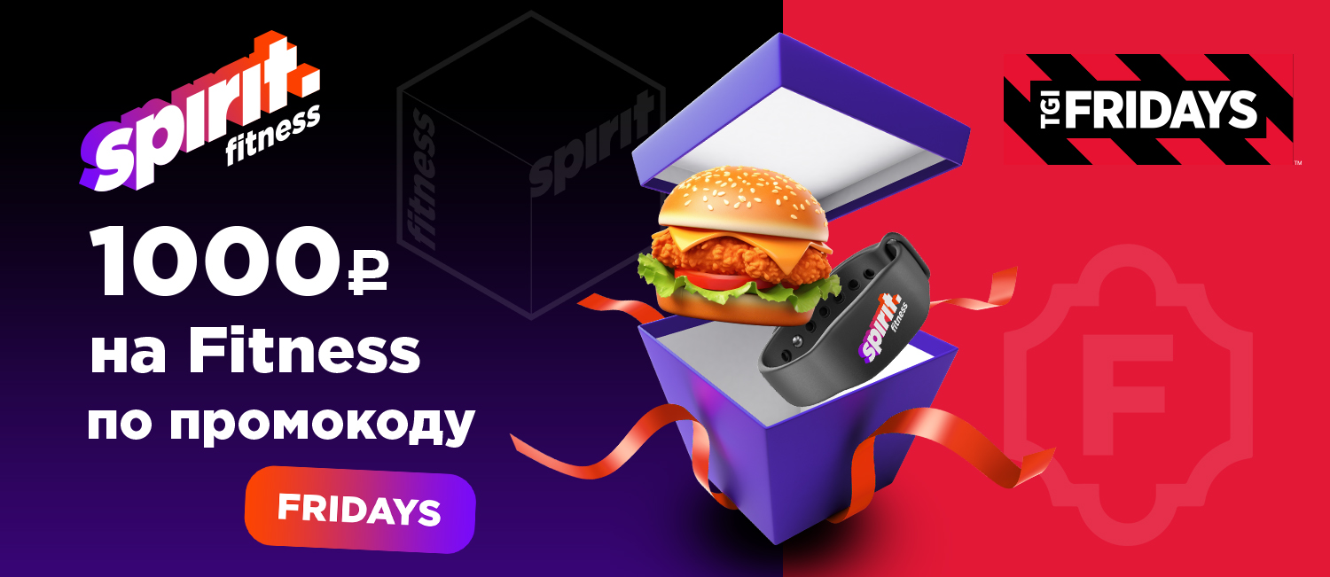 Скидка 1000 рублей на любой абонемент в SPIRIT FITNESS по промокоду FRIDAYS